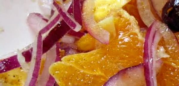 Spoon this dressing over the onion and oranges.