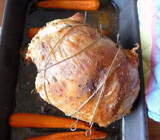 My boned leg of lamb weighed about 2 ¾ pound. (In the US, lamb is marketed much larger, so a boned leg might weigh more than 4 pounds.)