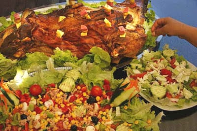 | Whole roast lamb - mechoui - with accompanying salads |