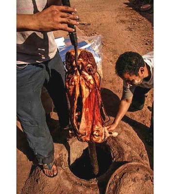 | Traditional mechoui, whole lamb roasted in clay oven |
