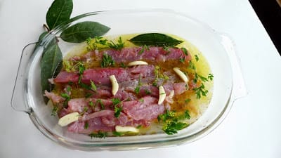 | Fish fillets in marinade. |