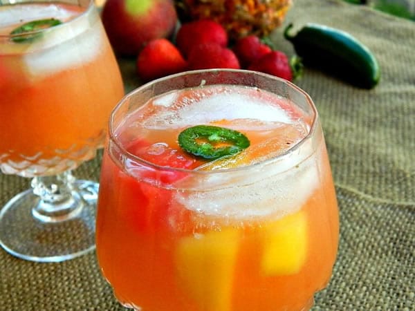 This white spicy sangria has a definite kick, and is thus not for those who prefer a milder, more mellow version of the refreshment. Imbibe accordingly - and have plenty of iced water on hand!