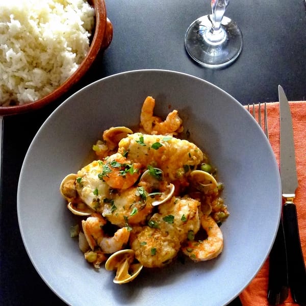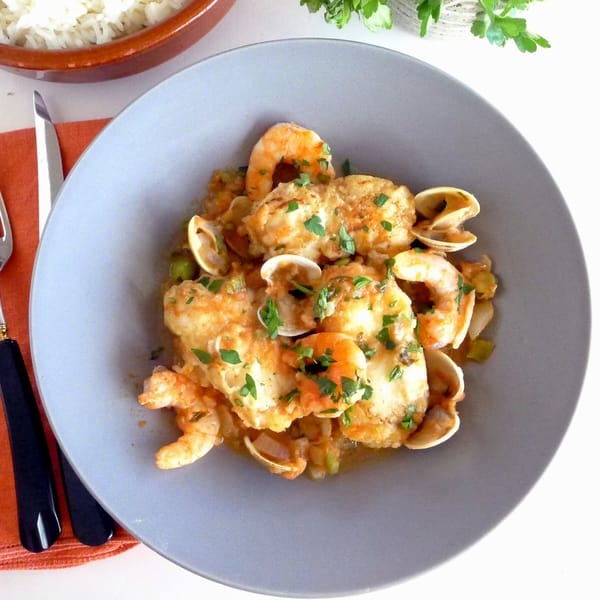 This week I’m making a really simple fishermen’s dish, rape a la marinera or monkfish, mariner’s style (once saw that translated into English as “rape, sailor style”).