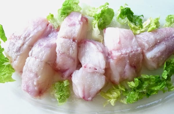About half the fish’s weight is it’s enormous head, which is ideal for soup. However, in US markets, you'll probably find only the tail section. It’s very meaty, with only a round center bone, easily removed, and no fiddly fins and spines. That makes monkfish a perfect fish for people who are impatient with fish with bones.