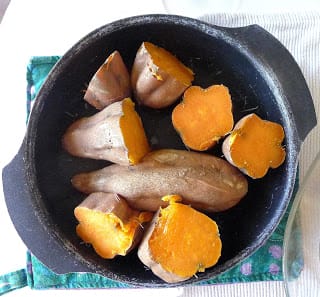 And, now that I’ve turned on the oven, I might as well roast some sweet potatoes, the first of the season.