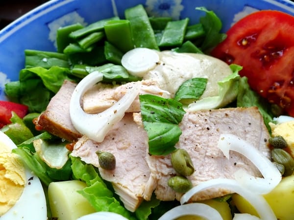 | Grilled tuna in a summer salad. |