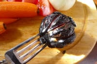 | Char-roasted head of garlic. |