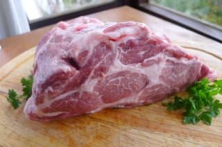 | Pork shoulder, marbled with fat. |