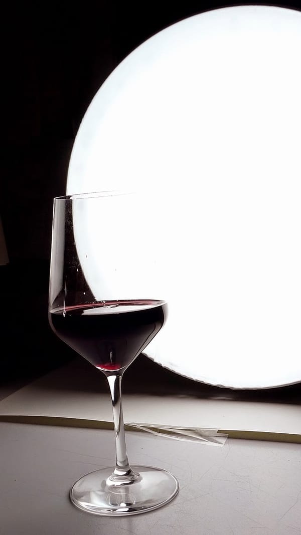 | Witches' brew - definitely not the way to photograph fine red wine. |