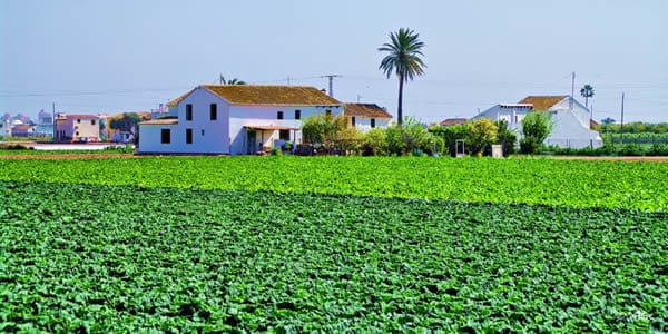 Huerta Valenciana - Valencia's Market GardenThe traveller who goes inland will find wide-open spaces designated to the cultivation of fruit and vegetables.. Mountain slopes are reserved to grow almond trees and carob trees, whilst the rest of the land is used for abundant citrus trees and vegetables, which Valencia exports in quantity.