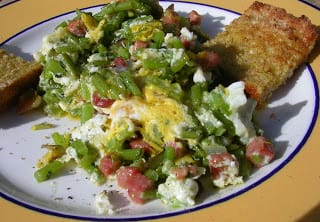 I first tasted it in Extremadura, where it was cooked in a delicate vegetable flan. But, country folk who gather it usually fold the chopped stems into scrambled eggs. So that’s what I had for lunch today.